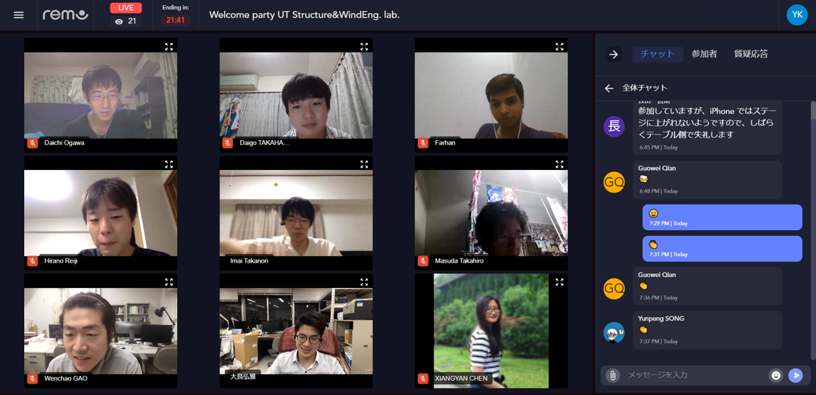 橋梁風工学研の新入生歓迎会をオンラインで開催しました。